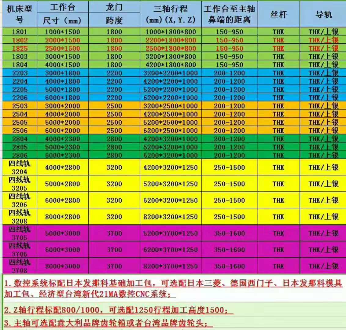 杭州日丰传感器制造有限公司供應數控(kong)龍門銑床型号(hào)如下圖: