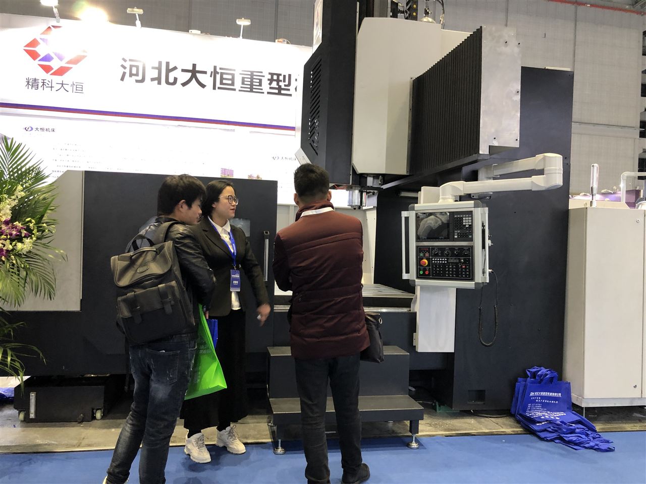 河(he)北大恒銷(xiāo)售人員為(wéi)前來看設(she)備的朋友(yǒu)們介紹河(he)北大恒數(shu)🚶控龍門銑(xi)床!