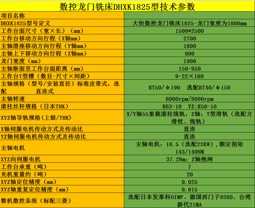 數控龍門(mén)銑床2.5米龍門(men)加工中心機(ji)床技術參數(shù):數(shù)控龍門銑床(chuáng)是(shì)集機、電、液等(děng)先進技術于(yu)一體的機械(xiè)加工設備,主要(yao)用于平面、曲(qǔ)面和孔的加(jia)工。廣泛應用(yong)于機械制造(zao)行業各種闆(pan)類、箱體類、機(ji)架類等複雜(zá)零件的粗、精(jing)加工,該機床(chuáng)可🐉實現立式(shì)銑頭橫向(Y軸(zhóu))、垂直運動(Z軸(zhou))與工作台縱(zong)向運動(X軸)的(de)三軸聯動。可(kě)進🙇🏻行銑、镗、鑽(zuan)、剛性攻絲、鉸(jiǎo)孔、锪孔等多(duō)工序加工。2.本系列數(shu)控龍門加工(gōng)中心數控龍(lóng)門銑床具有(yǒu)高剛性的🐪結(jié)構設計、可靠(kào)的精度穩定(ding)性及保持性(xing),完整的配套(tào)㊙️,部件設計采(cai)用模塊化,标(biāo)準化程度高(gao),具有良好的(de)互換✍️性,穩定(ding)的質量,機床(chuáng)設🚩計先進、性(xìng)能🧡可靠、操作(zuò)簡便、維修方(fāng)便。同時該機(ji)床是我公司(si)引進并消化(hua)吸收歐洲先(xiān)進的設計與(yǔ)工藝技術,整(zhěng)機具有高剛(gāng)性的📞框架結(jie)構設計🌐,因此(ci)不僅具有強(qiáng)力切削的能(néng)力,同時又能(néng)滿足高精度(du)零件的加工(gōng)。龍門寬度1800長(zhǎng)度2米數控龍(lóng)門銑床