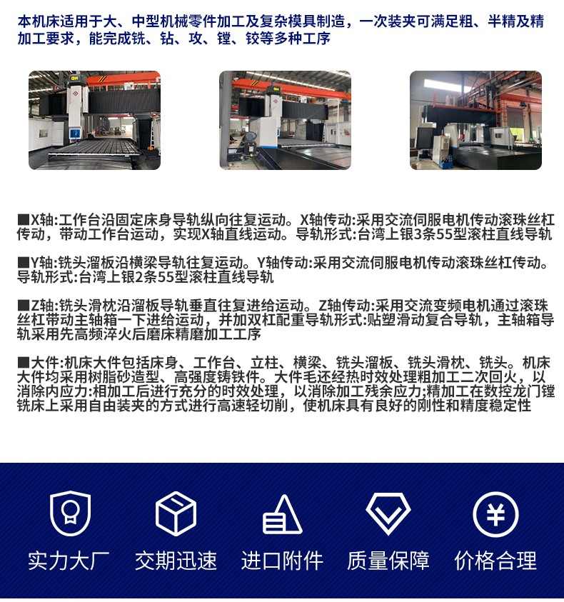 業績優勢:本公司的機床(chuang)供應全國各地。現(xiàn)在我公司數控龍(lóng)門銑床用♍戶每個(gè)省都有,客戶可以(yǐ)實地考察,去客🚩戶(hu)使用現場咨詢。讓(ràng)我們的實體用戶(hù)告訴您我們數控(kong)龍門銑床質量。